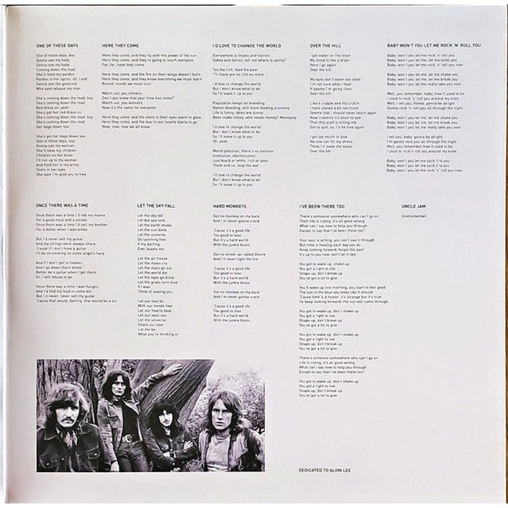 Лицензионное издание, выпущенное на виниле. В альбом вошли следующие композиции: One Of These Days, Here They Come, I'd Love To Change The World, Over The Hill, Baby Won't You Let Me Rock 'N' Roll You, Once There Was A Time, Let The Sky Fall, Hard Monkeys, I've Been There Too, Uncle Jam, One Of These Days, Here They Come, I'd Love To Change The World, Over The Hill, Baby Won't You Let Me Rock 'N' Roll You, Once There Was A Time, Let The Sky Fall, Hard Monkeys, I've Been There Too, Uncle Jam