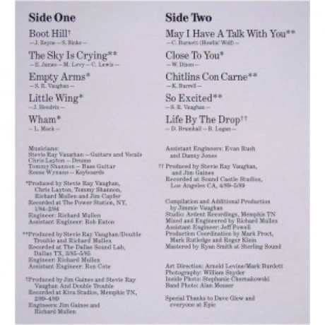 Лицензионное издание, выпущенное на виниле. Содержание: Boot Hill, The Sky Is Crying, Empty Arms, Little Wing, Wham, May I Have A Talk With You, Close To You, Chitlins Con Carne, So Excited, Life By The Drop