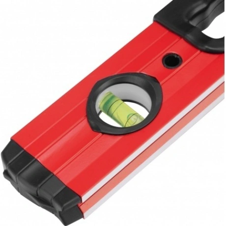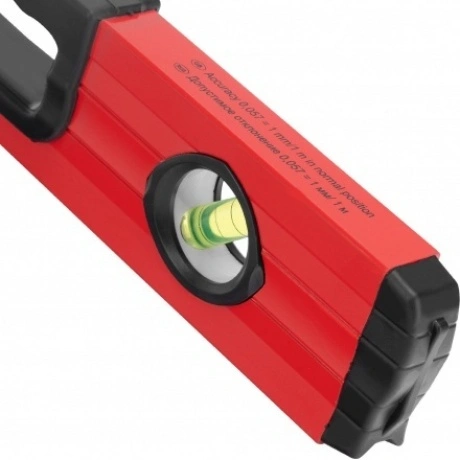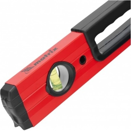 Алюминиевый уровень MATRIX отличается высоким запасом прочности благодаря усиленной конструкции алюминиевого профиля. Инструмент применяется в сфере строительных, монтажных и сантехнических работ. Подошва приспособления имеет специальную форму, что обеспечивает простоту измерений на трубах. Для более удобного удержания уровень оснащен ручками. Наличие трех акриловых колб поможет с высокой точностью определить отклонения поверхностей от вертикальности, горизонтальности и от угла в 45°.