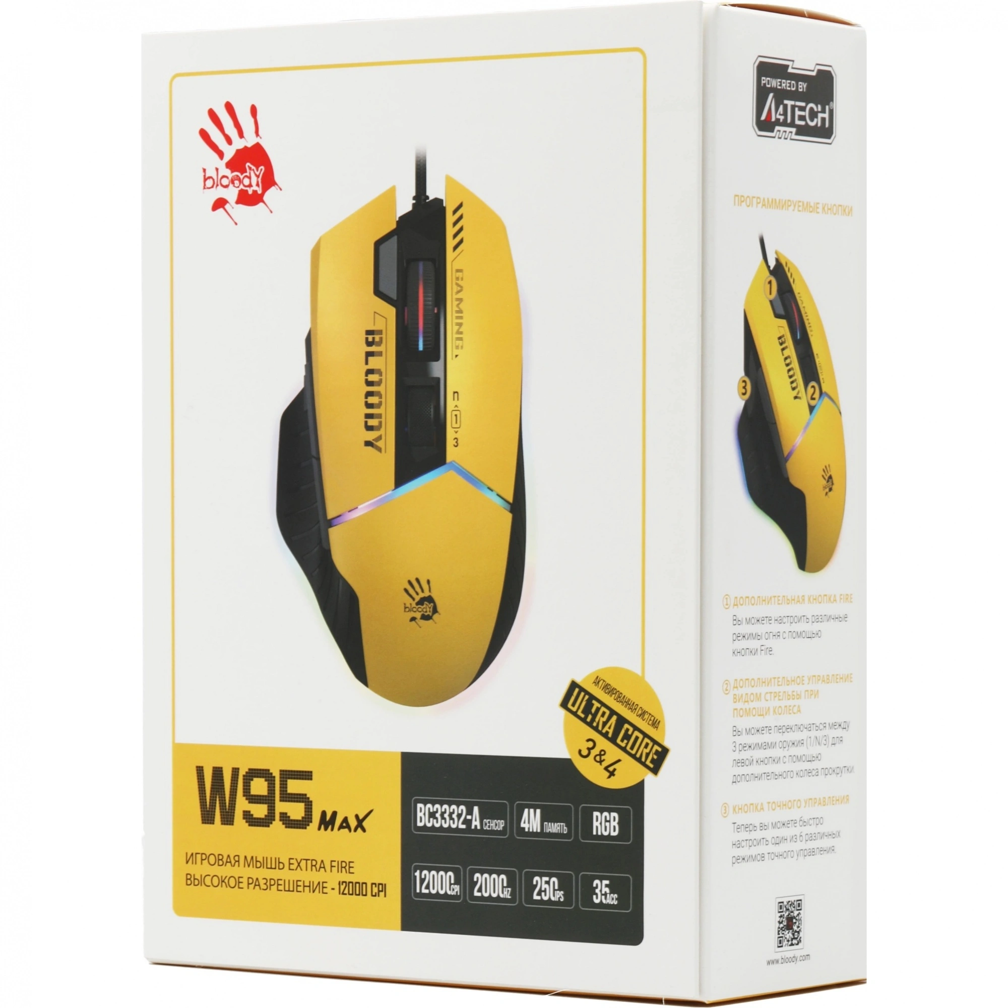 Мышь проводная A4Tech Bloody W95 Max Sports создана для тех, кто увлекается компьютерными играми. У модели предусмотрено 10 кнопок, некоторые из которых программируются для быстрых команд. Широкий спектр функций и настроек позволяет полностью персонализировать манипулятор в соответствии с игровыми привычками пользователя. Мышь оснащена профессиональным сенсором MAX BC3332-A с разрешением 12000 dpi и ускорением 35g, обеспечивающим максимальную точность и управляемость. Также геймеру доступно 4 типа настроек высоты отрыва (LOD) и переключение чувствительности датчика.