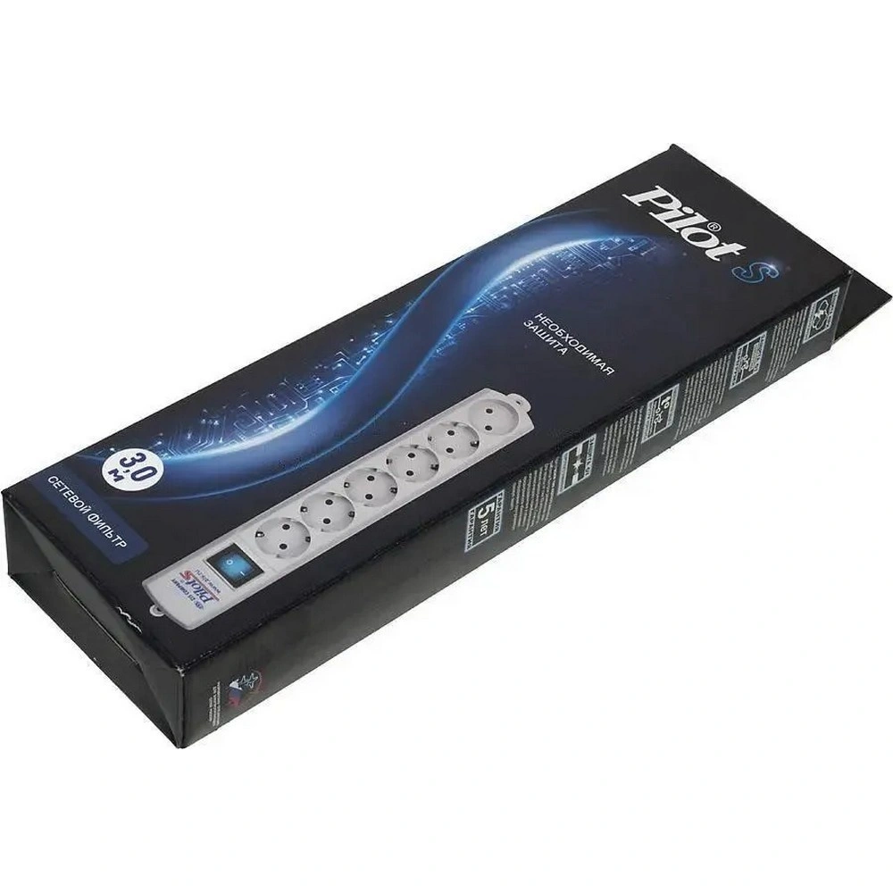 Сетевой фильтр Pilot S 3м (6 розеток) белый в Москве