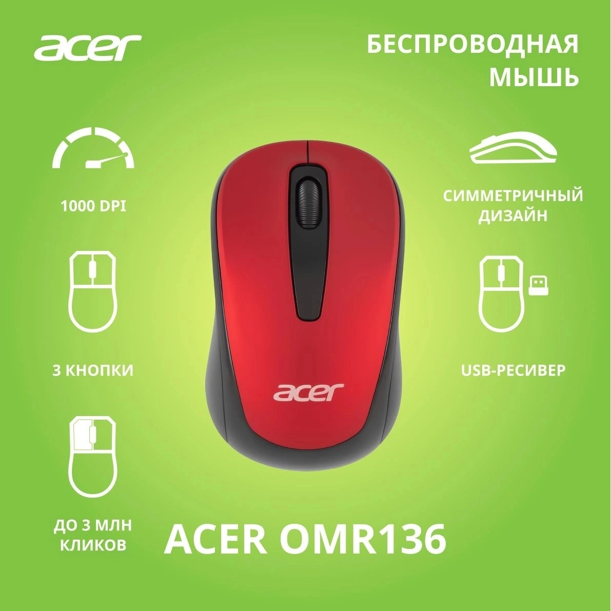 Отзывы о товаре Мышь Acer OMR136 Red ZL.MCEEE.01J