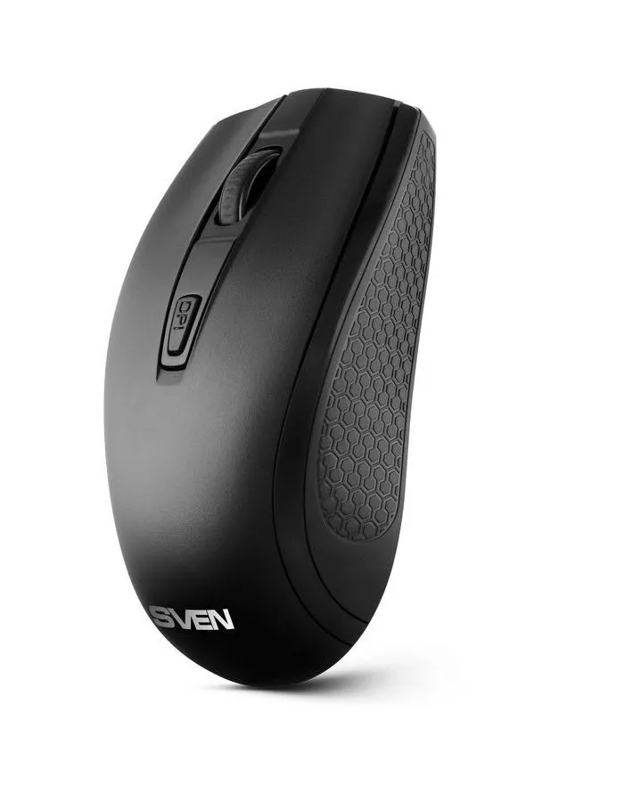 Благодаря мыши беспроводной Sven RX-220W вы сможете комфортно работать с компьютером или ноутбуком, ведь этот манипулятор безукоризненно и молниеносно передаст все ваши запросы и команды операционной системе. Модель получила классическую черную расцветку корпуса, столь строгое оформление позволит использовать ее не только дома, но и в офисе. В конструкции устройства присутствуют четыре кнопки, одна из которых отвечает за переключение разрешения сенсора. Датчик в манипуляторе представлен оптическим светодиодным типом. Максимальное разрешение датчика беспроводной мыши Sven RX-220W равняется 1600 dpi. Также пользователю доступны еще два режима работы сенсора: на частоте 800 dpi и 1200 dpi. Модель подойдет для правой и левой руки благодаря универсальной форме.
