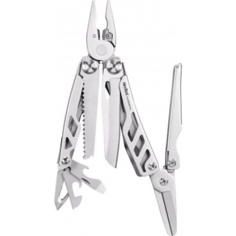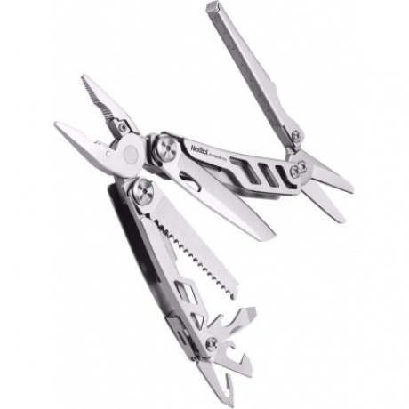 Мультитул NexTool NE20232 выполнен в сером металлическом корпусе. Модель оснащена основным ножом для реза веток, линейкой длиной 7 см, ножом для очистки провода от изоляции, ножом для реза веревок или канатов, открывалкой бутылок, пассатижами, молотком для разбивания стекла автомобиля при чрезвычайных ситуациях, ножницами, пилой и крестовой отверткой. Каждый инструмент выполнен из стали толщиной 2 мм и твердостью 30 HRc. Мультитул поставляется в транспортировочном чехле.
