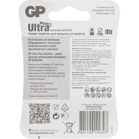 Алкалиновые батарейки AAA GP Ultra Plus Alkaline 24AUP LR03 из-за своей высокой энергоёмкости, длительного и равномерного расхода заряда и удобного «мизинчикового» типоразмера очень популярны у российского потребителя. Они идеальны для портативных аудиоплееров, карманных фонариков и радиоприёмников, беспроводных гаджетов, компьютерных клавиатур и мышек, различных измерительных приборов, детских игрушек и пр.