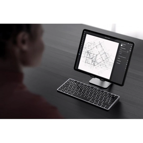 Клавиатура беспроводная SATECHI Slim X1 – качественный представитель компьютерной периферии, рассчитанный на работу с компьютерной техникой и цифровыми устройствами бренда Apple. Элегантный дизайн, в котором легко угадывается стиль Apple, не оставит равнодушным ни одного пользователя. За счет низкопрофильных клавиш мембранная клавиатура отличается тонким корпусом, выполненным из прочного металла. 78 клавиш обрамляет белая подсветка с регулировкой яркости, которая подарит дополнительный комфорт при работе за компьютером не только днем, но и ночью. Беспроводная клавиатура SATECHI Slim X1 придется по вкусу любителям тишины: плавное и мягкое нажатие на клавиши сопровождается минимальным уровнем шума. Неоспоримым преимуществом этого устройства является беспроводное подключение, благодаря которому рабочее место не будет захламлено ворохом проводов. Функционирует островная клавиатура от встроенного аккумулятора, для подзарядки которого используется интерфейс USB Type-C.