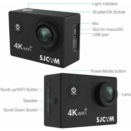 Желаете записывать свои экстремальные приключения и делать прекрасные снимкиx Экшн камера SJCAM SJ4000 Air – это то, что вам нужно! Экшнкамера специально разработана для блогеров, которые ценят компактность, удобство и качество записи. Это одна из самых маленьких экшен камер, поставляемых производителем SJCAM. В комплекте с камерой идет водонепроницаемый кейс, что позволяет использовать камеру для съемки под водой на глубине до 30 метров в чехле. SJCAM SJ4000 Air очень компактная мини sports camera. Габариты 59х41х25 мм, масса – 58 г. Устройство легко и удобно помещается в карман, сумку или рюкзак.. Но вай фай экшенкамера SJCAM SJ4000 Air не только мощная экшн-камера, но и профессиональный фотоаппарат. Камера снимает видео высокой четкости (2K, 4К, FullHD, HD), делает фото с высоким разрешением в покадровом или режиме непрерывной съемки современной цифровой техникой. Имеется цифровая стабилизация и таймер для создания профессиональных снимков. С помощью Wi-Fi 2.4 G вы сможете управлять видео камерой из любой точки мира через свой смартфон, планшет или браслет SJCAM remote control.
