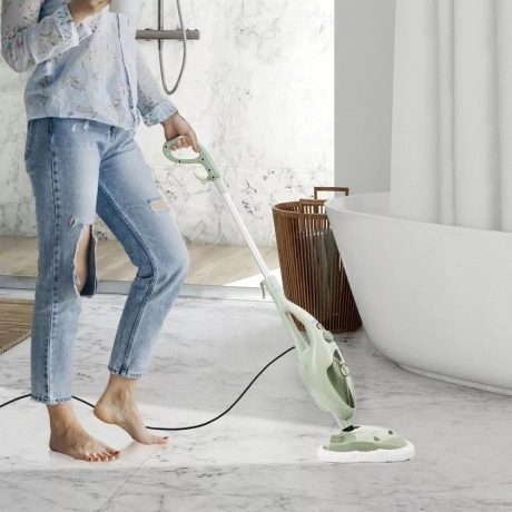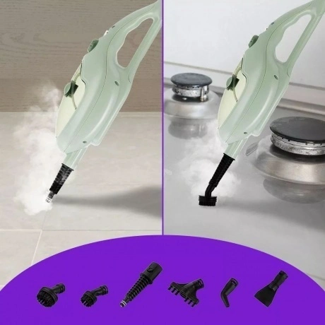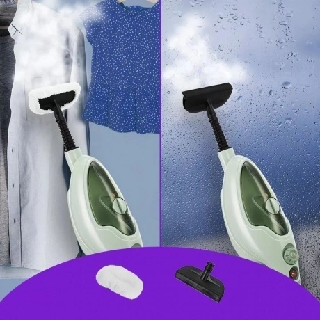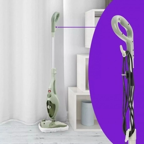 Пароочиститель Kitfort КТ-1076 оснащен регулятором для установки подходящей мощности. Вода из 0.45-литрового резервуара нагревается за 15 сек. Время непрерывной работы прибора рассчитано на 37 мин. Панель управления находится на корпусе устройства. Kitfort КТ-1076 комплектуется насадками для очистки ковровых и напольных покрытий, зеркал, стекол. В насадку для пола встроена УФ-лампа, которая нейтрализует бактерии. При подключении к сети используется 2.8-метровый кабель. Предусмотренные конструкцией держатели служат для компактного хранения шнура.