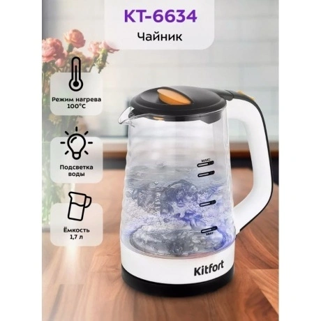 Чайник электрический Kitfort КТ-6634 - характеристики и описание, фото и цены представлены на карточке товара. Для того чтобы купить товар по цене 1825 руб., вам надо позвонить по телефону 8(495)137-52-98 в Москве, или оформить покупку в личном кабинете.