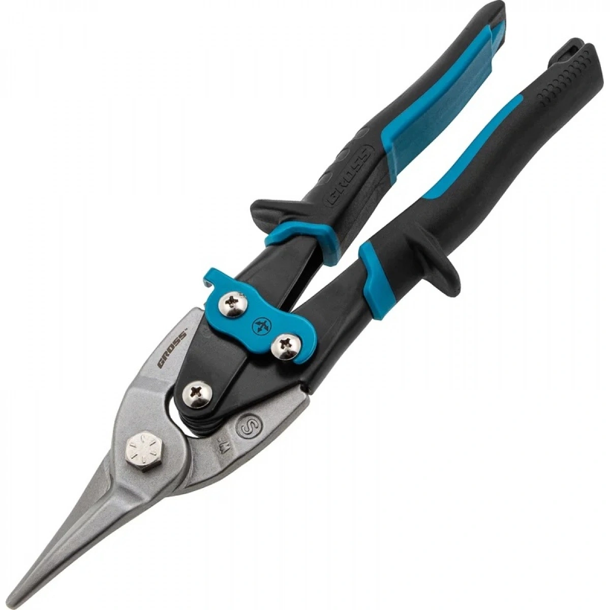 Ножницы по металлу торговой марки GROSS предназначены для точного прямого реза листового металла толщиной до 1.2 мм и нержавеющей стали толщиной до 0.7 мм. Рабочие части ножниц изготовлены из высоколегированной стали (CrMo), содержание молибдена и ванадия в ее составе придает необходимую жесткость и высокую твердость. Режущие губки проходят процесс индукционной закалки и имеют твердость 60–62 HRС. Ножницы общей длиной 250 мм оснащены эргономичными двухкомпонентными рукоятками, оригинальная форма которых минимизирует риск травм и обеспечивает удобство при длительных работах.