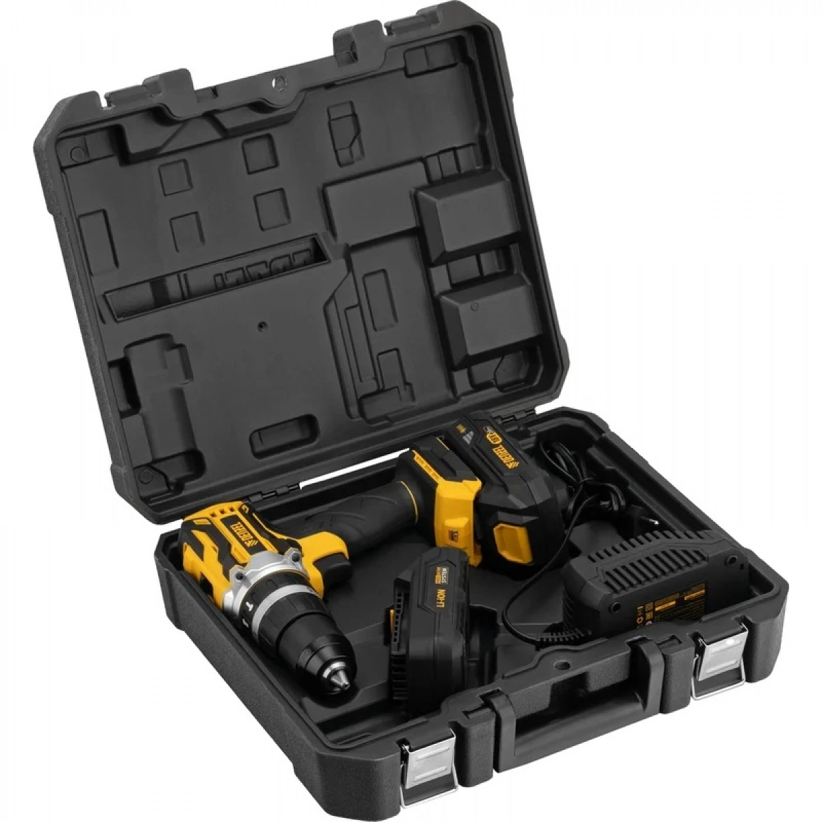 дрель-шуруповерт аккумуляторная, 2 аккумулятора, зарядное устройство, кейс, руководство по эксплуатации с гарантийным талоном, упаковка