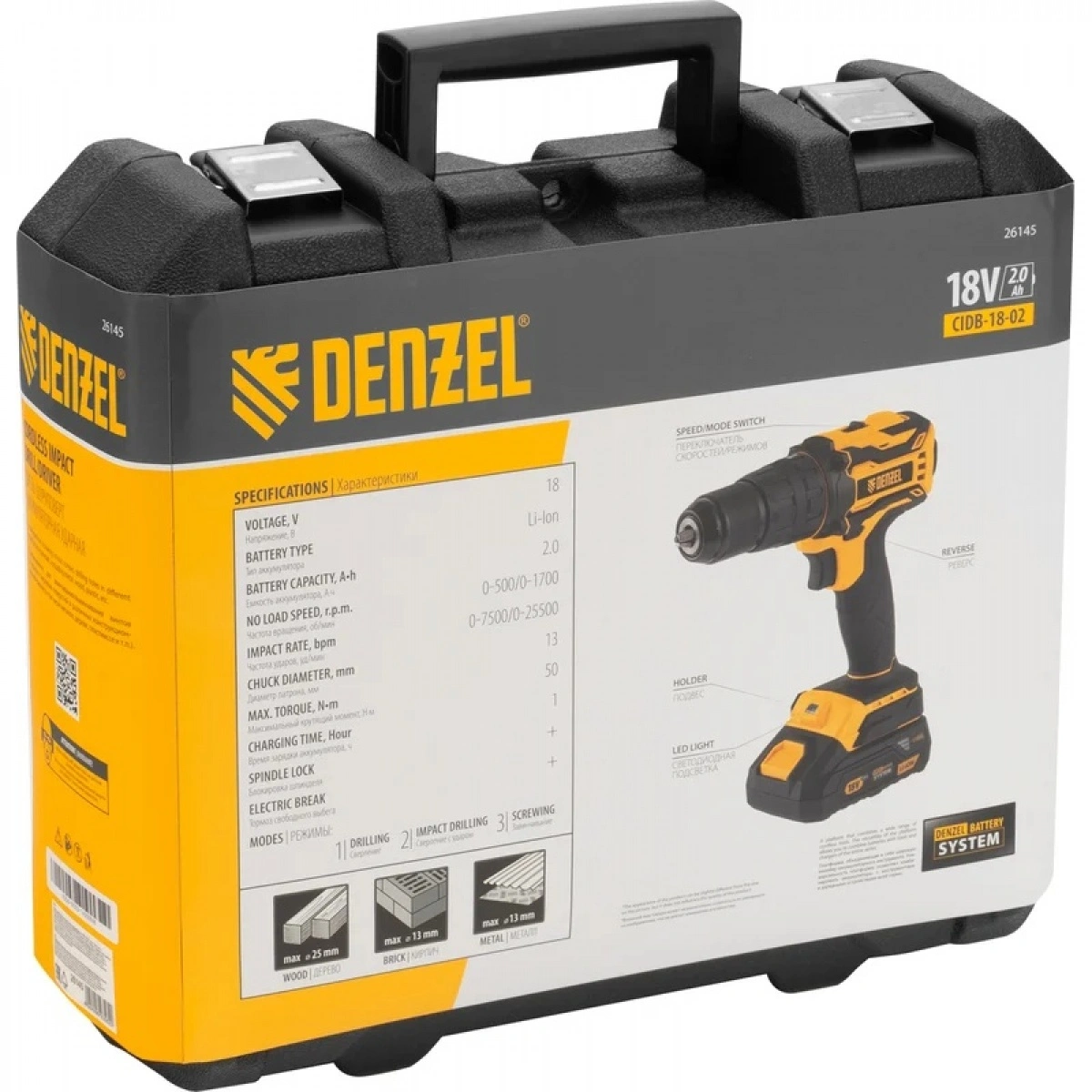 Дрель-шуруповерт аккумуляторная ударная бесщет CIDB-18-02, Li-Ion, 18 В Denzel - описание товара, его характеристики, фото и цены представлены на карточке товара. Чтобы купить этот товар по цене 15670 руб., свяжитесь с нами по телефону 8(495)137-52-98 в Москве, или оформите покупку через корзину.
