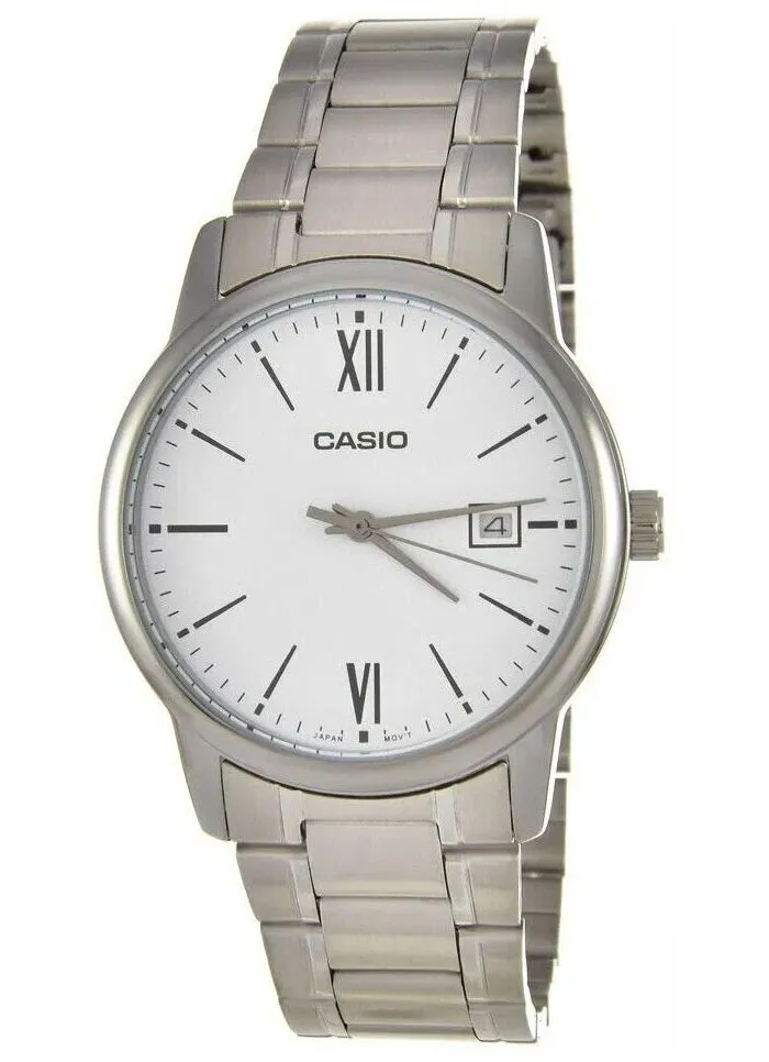 Стильные и практичные мужские часы Casio с круглым корпусом и стальным браслетом. Присутствует окошко даты. Батарейка рассчитана на 3 года. Браслет с тройной раскладывающейся застежкой. Вес часов 93 грамма.