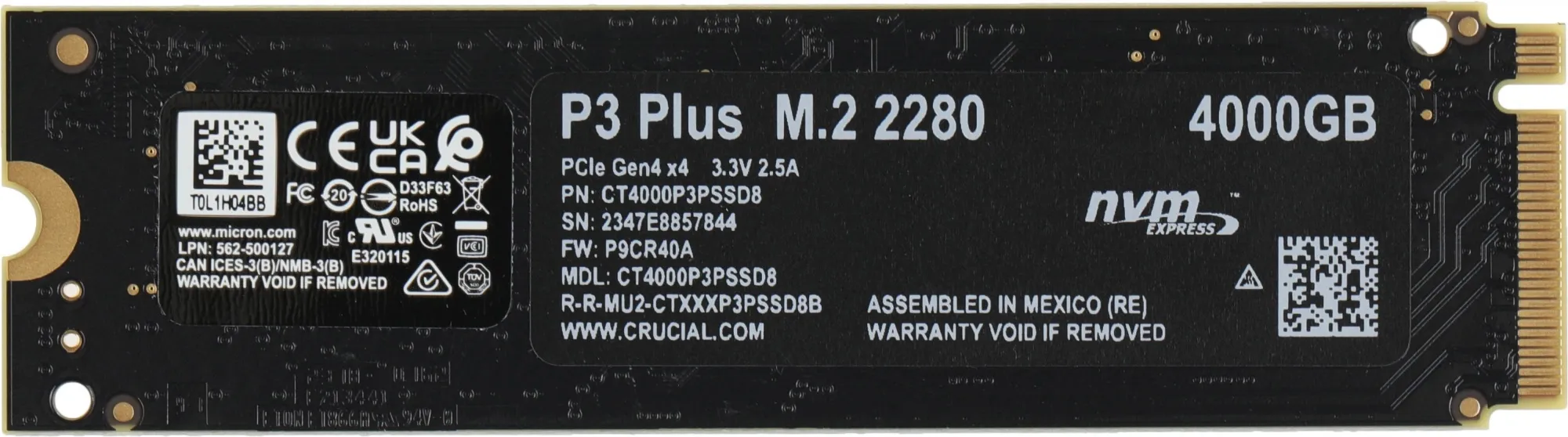 • Накопитель SSD Crucial P3 Plus 4TB (CT4000P3PSSD8) - фото 1