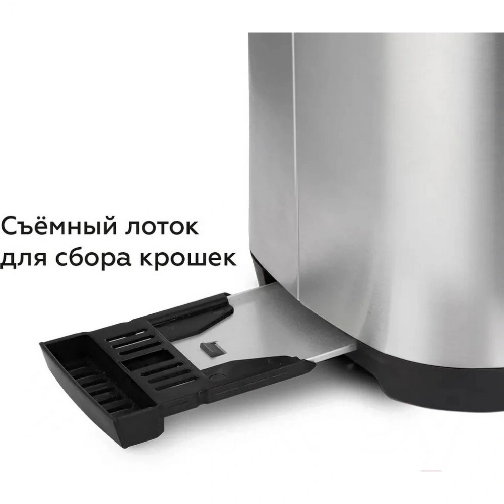 Особая решетка для подогрева булочек позволяет расширить функционал прибора и насладиться дополнительными видами выпечки. Съемный поддон для крошек упрощает уход за тостером, обеспечивая легкость его очистки и поддержание чистоты на кухне.