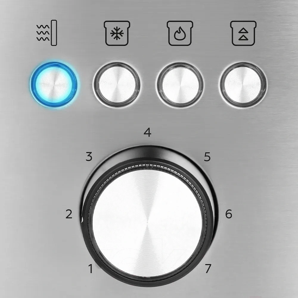 С мощностью 800 Вт тостер обеспечивает быстрый и равномерный нагрев. Функция автоматического центрирования помогает обеспечить равномерное обжаривание каждого ломтика хлеба. Устройство оснащено регулировкой степени обжаривания, что позволяет выбрать идеальную степень хруста по вашему вкусу, а наличие кнопки отмены дает возможность моментально остановить процесс, если это необходимо.
