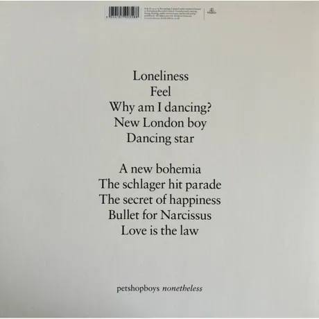 Британские иконы электронной поп-музыки Pet Shop Boys возвращаются с совершенно новым студийным альбомом Тем не менее, которому предшествует первый сингл " Loneliness ". Продюсированная Джеймсом Фордом музыка на альбоме «Antheless» одновременно воодушевляет и задумчива, сочетая в себе электронику, живые инструменты и оркестровые аранжировки. Песни очень мелодичны и типичны для Pet Shop Boys, со свежим, открытым звучанием, объединяющим классические направления написания песен PSB и двигающим их в новых направлениях. Продав более 50 миллионов пластинок, Pet Shop Boys, несомненно, являются самым успешным британским дуэтом всех времен. Награды BRIT и номинации на Грэмми были многочисленными, в том числе в 2009 году, когда Pet Shop Boys выиграли BRIT за выдающийся вклад в музыку; в 2000 году написание песен Pet Shop Boys было награждено премией Ivor Novello за выдающийся вклад в британскую музыку - с более чем 70 хит-синглами, выпущенными за пять десятилетий, написание песен остается основой неизменной актуальности и успеха Pet Shop Boys.