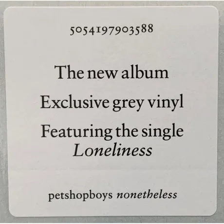 Pet Shop Boys - Nonetheless (Grey) (5054197903588) виниловая пластинка - по цене 4605 руб. в интернет-магазине КотоФото. Подробная информация находится на карточке товара - описание, характеристики, фото. Забрать заказ можно из пунктов самовывоза или оформить доставку на дом. Если останутся вопросы, звоните - 8(495)137-52-98 в Москве.