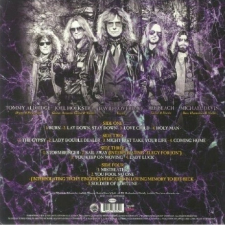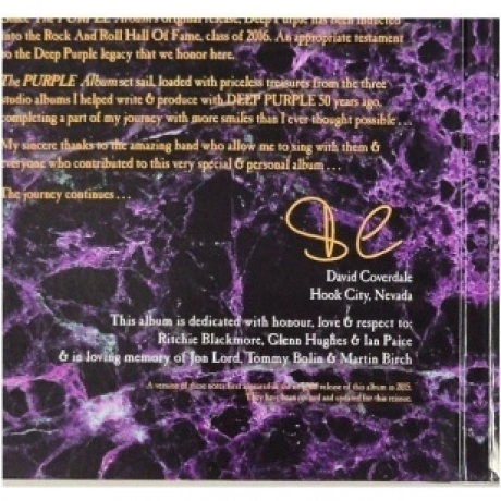 Новое специальное издание альбома Whitesnake "The Purple Album" 2015 года. Лимитированная версия альбома на золотистом виниле. В этом году Ковердейл отмечает 50-летие своего дебюта в Deep Purple специальной версией "The Purple Album" - альбома Whitesnake, посвященного трем годам его работы в Deep Purple. В это ремикшированное, ремастированное и расширенное издание альбома 2015 года вошли ранее не издававшиеся записи, в том числе демо, которое обеспечило Ковердейлу место в Deep Purple. К Ребу Бичу на гитаре и Майклу Девину на бас-гитаре присоединился Джоэл Хоэкстра, а барабанщик Томми Олдридж впервые участвует в записи студийного альбома Whitesnake со времен альбома Slip Of The Tongue 1989 года.