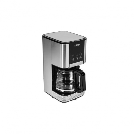 Капельная кофеварка Кіtfort КТ-7222 поможет приготовить ароматный кофе из молотого кофе. Она компактная и простая в использовании. Кофеварка идеально подойдёт для приготовления кофе в домашних условиях или в офисе. Кофеварка оснащена нейлоновым фильтром, которым можно пользоваться неограниченное количество раз. Его удобно мыть после приготовления кофе и использовать снова. Для удобства использования в комплекте идёт мерная ложка. Кнопка «Крепкий» включает и выключает приготовления более крепкого кофе. Кнопки «Часы» и «Минуты» настраивают текущее время и время начала приготовления кофе при отложенном старте. Кнопка «Очистка» включает и выключает режим автоматической очистки. Резервуар для воды ёмкостью 1.5 л позволяет за один раз приготовить кофе на 12 чашек (по 125 мл). На резервуаре для воды и кофейнике нанесены соответствующие отметки, поэтому вам будет удобно приготовить нужное количество чашек кофе. Кофеварка оборудована противокапельной системой - затвором, приостанавливающим подачу кофе при вынимании кофейника из кофеварки. Вы можете налить кофе в чашку, не дожидаясь окончания приготовления. Функция отложенного старта позволит начать приготовление кофе в заданное время. Установите время приготовления, и к моменту, когда вы проснетесь, вас будет ждать ароматный свежезаваренный кофе. По окончании приготовления кофеварка перейдёт в режим подогрева. Платформа с подогревом, на которой стоит кофейник с готовым кофе, будет горячей в течение 30 минут, затем кофеварка выключится.