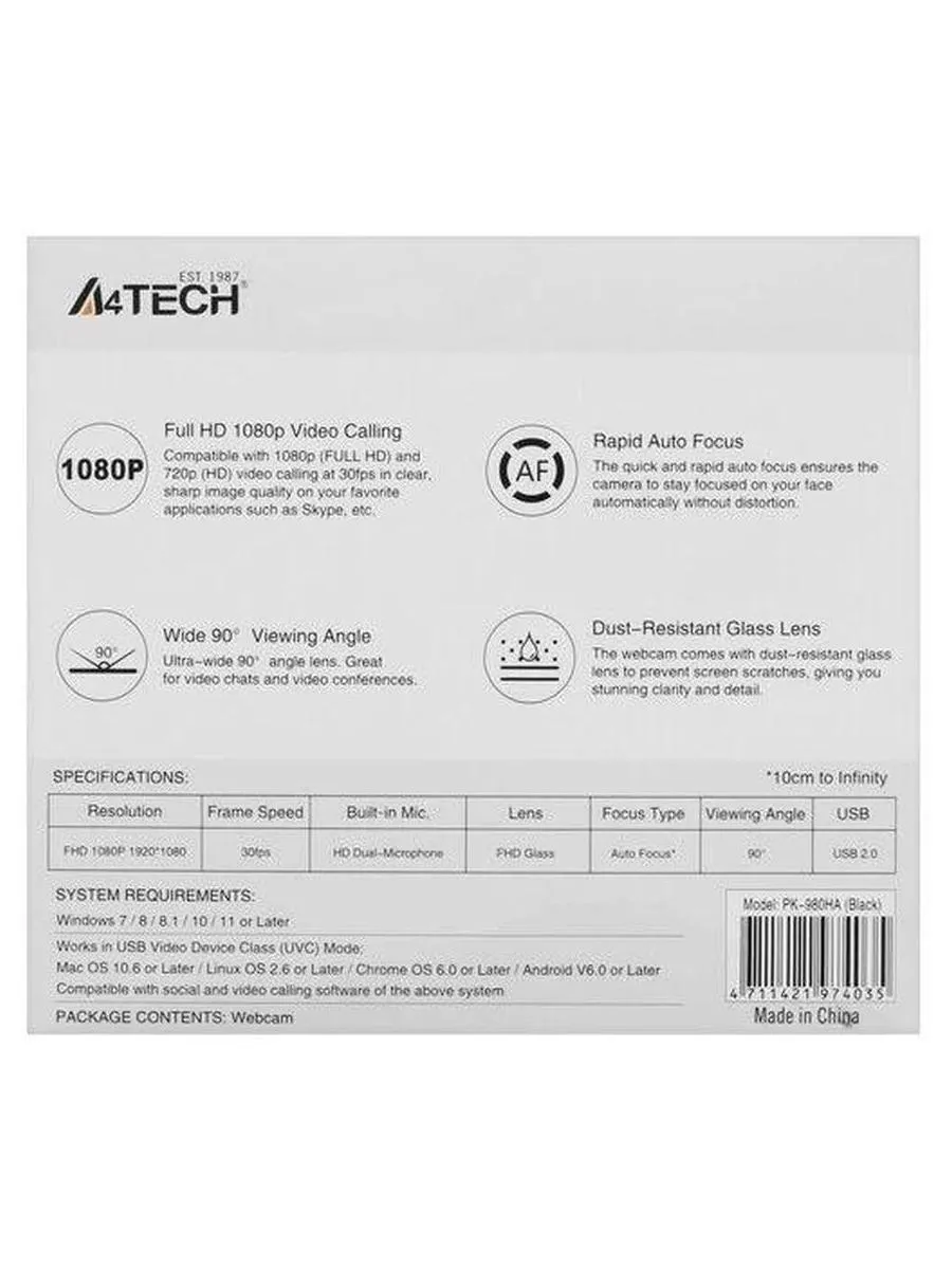Веб-камера A4Tech PK-980HA с сенсором CMOS 2 Мп обеспечивает детализированное видео формата FullHD в процессе общения. Система автоматической фокусировки настраивает резкость изображения и исключает размытие. Интегрированный микрофон четко передает голос. Стеклянный объектив защищает матрицу от появления царапин. Клипса с силиконовыми накладками предотвращает повреждение при контакте с поверхностями. Веб-камера A4Tech PK-980HA подключается к настольному компьютеру или ноутбуку посредством проводного интерфейса USB.