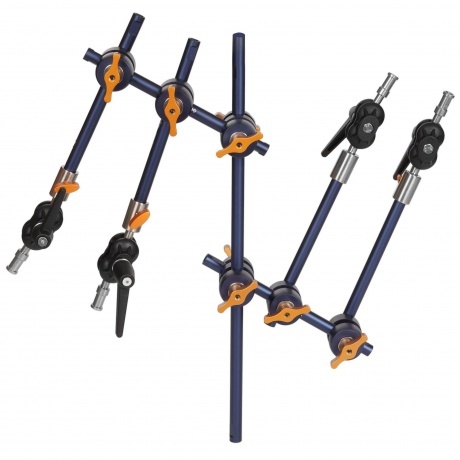 Комплект монтажный Godox Knowled GK7 для LiteFlow синего цвета разработан для крепления отражающих панелей, чтобы менять направление света и усиливать осветительные эффекты. Он совместим с отражателями Godox LiteFlow. Держатель шаровый AB10RS делает поворот легким и настраивает положения отражателей. Зажимы GDK, GSK, LSA-03 предназначены для крепления и регулировки. Удлинители Godox Knowled RS25 и RS50 регулируют высоту.