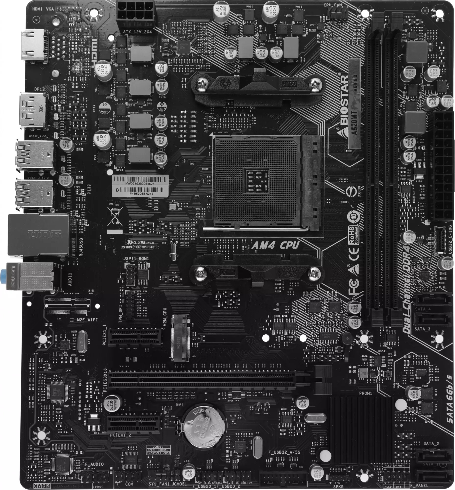 Представляем вам материнскую плату Biostar A520MT – надежное и мощное устройство, которое станет идеальным основанием для сборки вашего игрового или рабочего компьютера. Эта материнская плата оснащена современными технологиями и функциями, которые обеспечат стабильную работу вашей системы и позволят наслаждаться высокой производительностью. Biostar A520MT поддерживает процессоры с разъемом AM4, что позволяет вам выбирать из широкого ассортимента процессоров AMD для создания мощной системы. Чипсет AMD A520 обеспечивает высокую производительность и отличную совместимость с современными комплектующими.