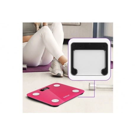 Розовые весы Kitfort КТ-819 – электронная модель со стеклянной платформой, пределом взвешивания 180 кг и точностью 100 г. Устройство работает от двух батареек AAA. Функция автоотключения через несколько секунд бездействия продлевает срок службы элементов питания. Kitfort КТ-819 дополнены LCD-дисплеем с подсветкой, Bluetooth для управления и просмотра статистики со смартфона через приложение. Вы можете выбирать 1 из трех единиц измерения и сохранять данные во встроенной памяти устройства на 8 пользователей. Диагностические весы рассчитывают ИМТ, определяют доли воды, костной, мышечной и жировой ткани.
