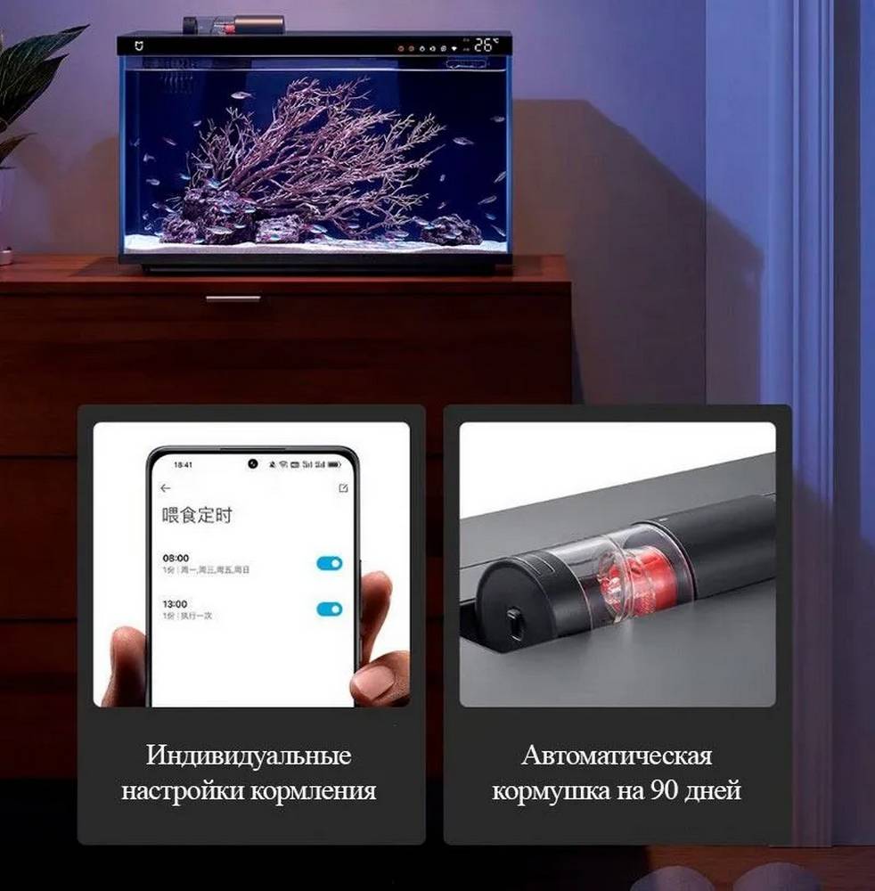 Xiaomi Mijia Smart Fish Tank MYG100 — настольный прямоугольный аквариум из прозрачного стекла с умным управлением, рассчитанный на тех, кто хочет завести рыбок без сложного обслуживания. Длина 44.6 см и высота 29.5 см позволяют разместить его на столе, тумбе или подоконнике, превратив аквариум в аккуратный элемент интерьера квартиры или офиса.?
