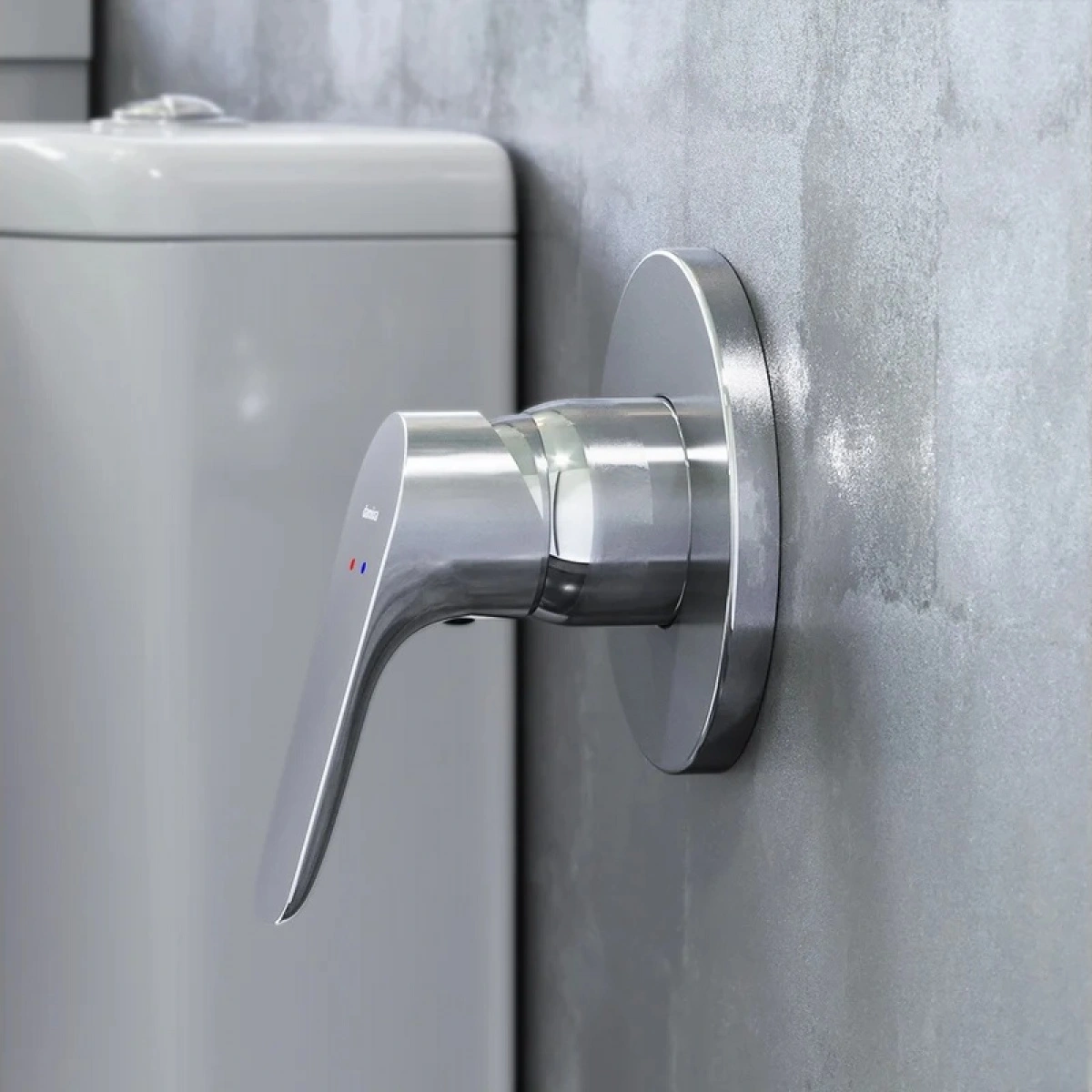Минималистичный дизайн смесителя, монтируемого в стену, позволит грамотно использовать пространство. Его диаметр составляет всего 110 мм, поэтому это идеальное решение для небольших помещений. Встраиваемые в стену смесители сохраняют эстетику ванной комнаты благодаря тому, что все непрезентабельные части скрыты.
