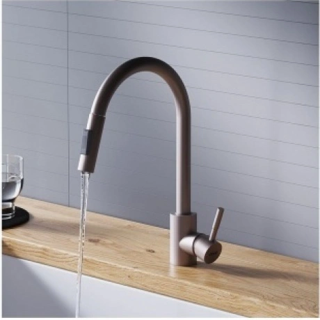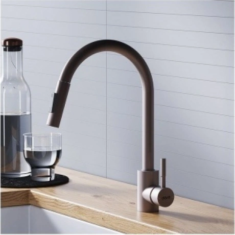 Оригинальное решение для кухни - смеситель для мойки с вытягивающимся изливом. В носике смесителя встроен вытягивающийся душ, благодаря которому так просто поддерживать гигиеническую чистоту на кухне и наполнять любые емкости!. Утонченный элегантный дизайн сохранит свою актуальность на долгие годы и останется украшением на вашей кухне. Удобная эргономичная ручка-стик обеспечивает легкое управление напором воды в одно касание. Для экономии расхода воды в смеситель установлен аэратор, который насыщает струю воды воздухом обеспечивая хороший напор даже при низком давлении в системе.Помимо этого, в моделипрослеживается немецкая педантичность и продуманность в деталях: эргономичная ручка, поворотный излив