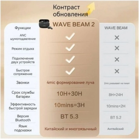 Качественный звук стал еще проще — и веселее. Наушники JBL Wave Beam 2 оснащены захватывающим звуком JBL Pure Bass Sound, а также технологиями активного шумоподавления и Smart Ambient, поэтому вы сами решаете, сколько внешнего мира вы хотите слышать. Управляйте четкими, чистыми звонками без помощи рук одним касанием наушников. Используйте приложение JBL Headphones, чтобы настроить звук и язык голосовых подсказок. Легко подключайтесь к 8 устройствам Bluetooth и легко переключайтесь с одного на другое. А благодаря времени воспроизведения до 40 часов они станут отличным повседневным звуковым компаньоном.