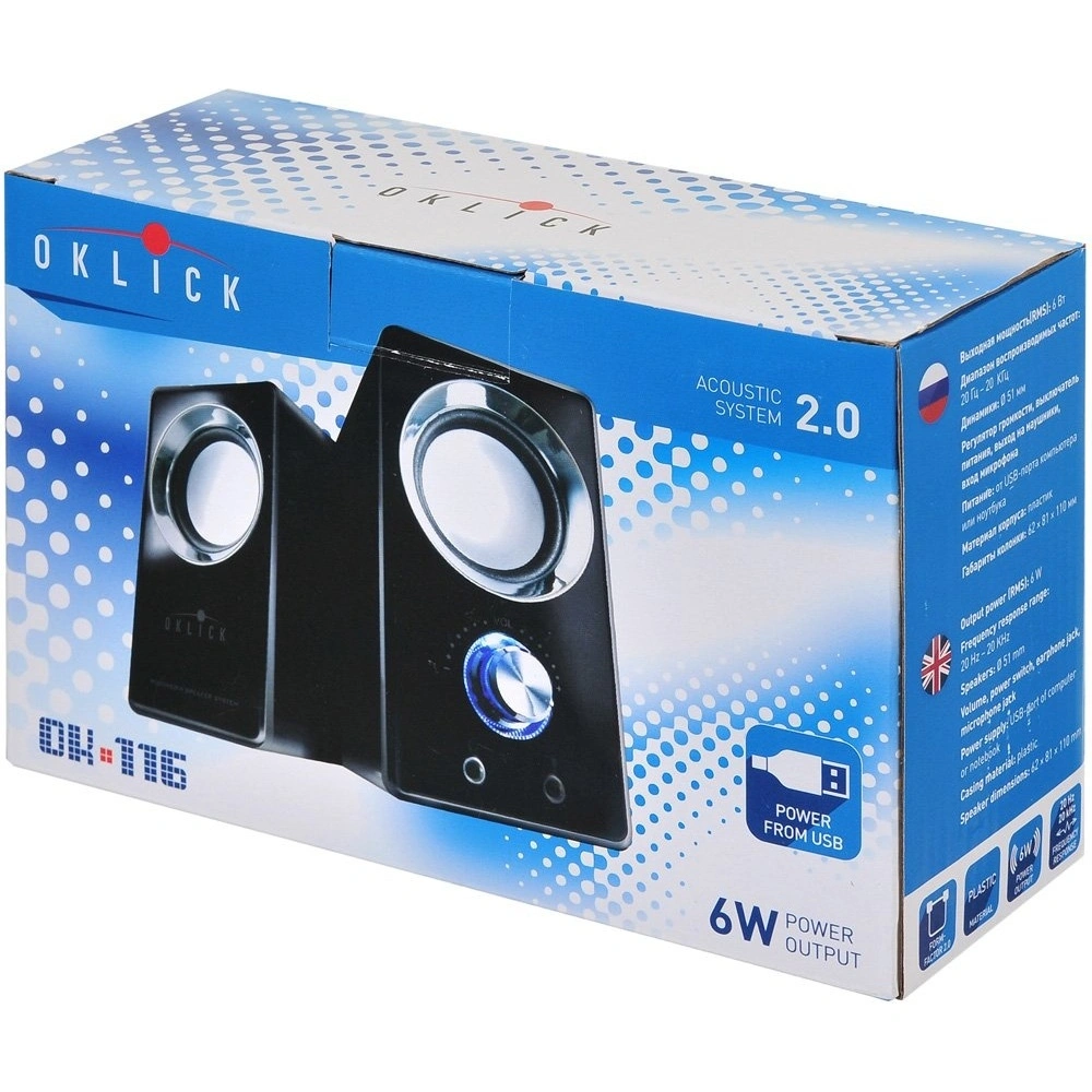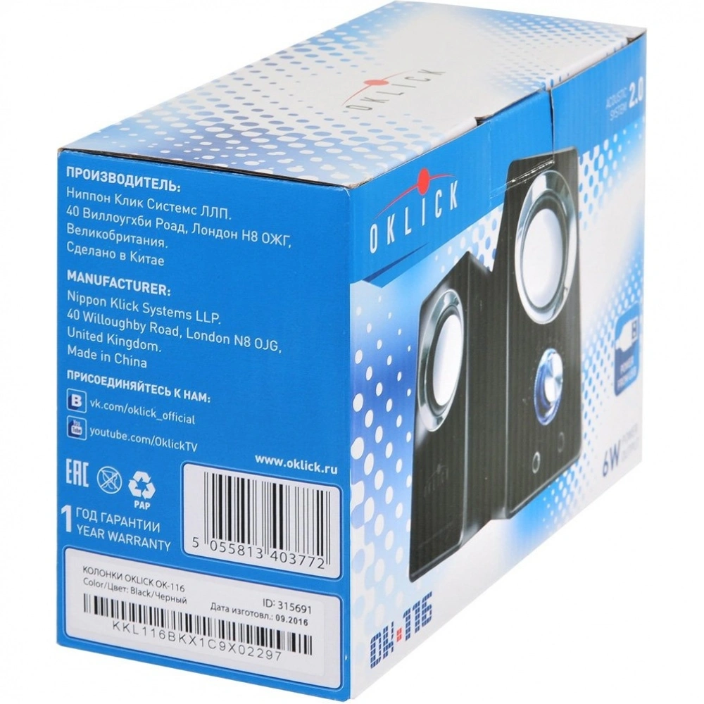 Колонки Oklick OK-116 2.0 черный 6Вт - купить по цене 1065 руб. в интернет-магазине КотоФото. На карточке товара Вы можете посмотреть подробное описание, характеристики и фото. Заказать товар можно на сайте, добавив в корзину, или позвонить по телефону 8(495)137-52-98 в Москве. Доступен самовывоз и доставка.