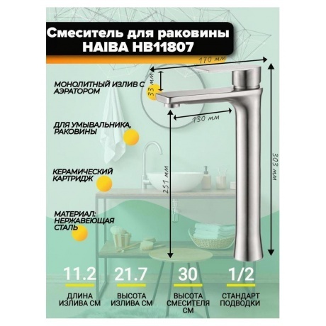 • Смеситель для раковины Haiba (HB11807) - фото 7