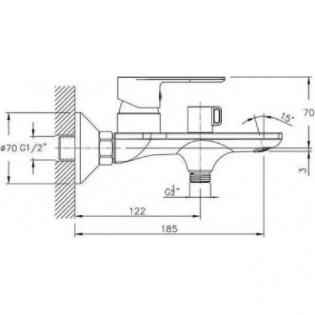Стильный качественный смеситель. Материал изготовления латунь. Монтаж настенный
