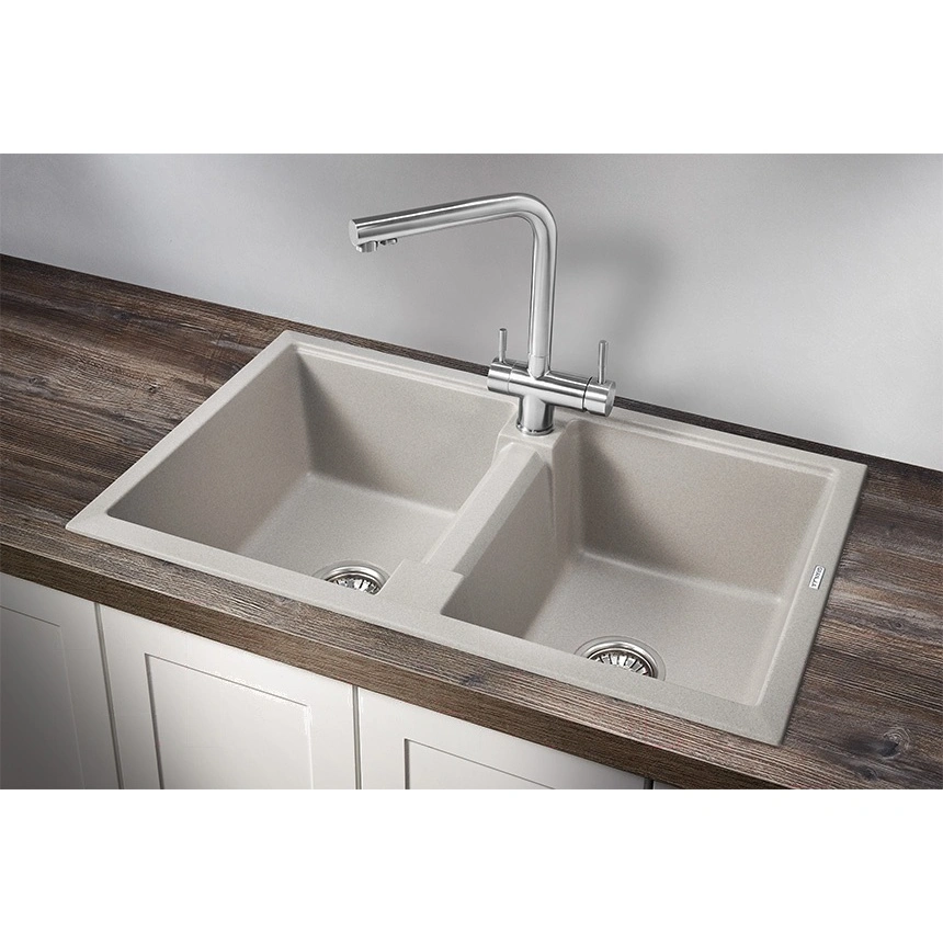 Мойка для кухни Granula 8101 - продуманное решение для просторных рабочих зон. Эта прямоугольная модель большого размера предназначена для больших кухонь, где важны удобство и функциональность. Мойка для кухни из камня оснащена двумя большими чашами, что обеспечивает максимум рабочего пространства и позволяет одновременно заниматься подготовкой продуктов и мытьем посуды. Две огромные глубокие чаши дают возможность размещать крупные кастрюли и противни без сложностей, а форма раковины способствует аккуратному отводу воды и удобству использования.