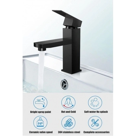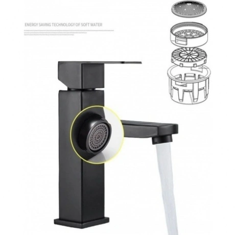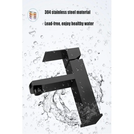 Смеситель для умывальника Fmark FS8101H - современный однорычажный смеситель, изготовленный из нержавеющей стали. Он предназначен для настольной или раковинной установки и имеет черный цвет. Смеситель оснащен керамическим картриджем и гибкой подводкой воды. Это надежное и долговечное решение для сантехники среднего класса.