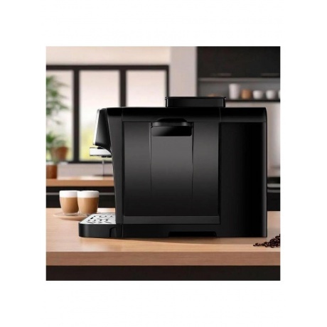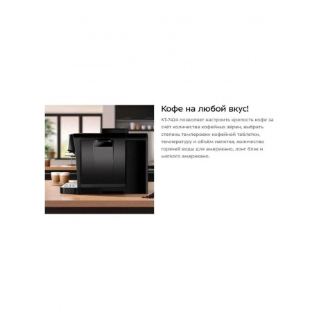 Кофемашина КТ-7424 — отличный выбор для гурманов, которые не хотят тратить много времени и сил, чтобы насладиться полным букетом вкуса свежезаваренного кофе. Кофемашина автоматически приготовит эспрессо, лунго, американо, лонг блэк и мягкий американо. На устройстве предусмотрен современный и удобный дисплей, который позволит выбрать приготовление того кофе, который вы хотите. Также на экране есть кнопка настройки. Кофемолка позволяет качественно измельчать кофейные зёрна непосредственно перед приготовлением. В кофемолке можно выбрать одну из пяти степеней помола, которая осуществляется путём изменения расстояния между жерновами за счёт поворота регулятора помола. В поддоне для капель предусмотрен поплавок, который поднимается и начинает выступать из решётки поддона, когда в нём скопилось много жидкости. Вы можете установить на поддон для капель подставку для чашек, чтобы использовать невысокие чашки было удобнее. КТ-7424 позволяет настроить крепость кофе за счёт количества кофейных зёрен, выбрать степень темперовки кофейной таблетки, температуру и объём напитка, количество горячей воды для американо, лонг блэк и мягкого американо. Устройство легко чистить и обслуживать. Съёмные детали достаточно промыть водой, а для прочистки труднодоступных мест в комплекте есть ёршик и щётка для чистки. На дне устройства предусмотрен отсек для хранения шнура питания.