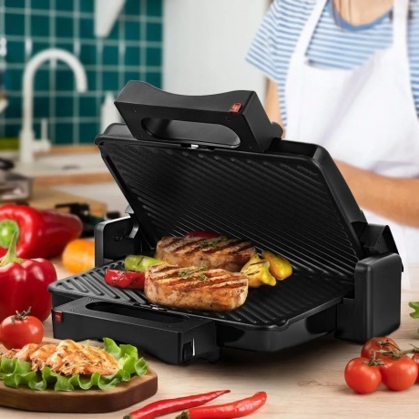 Электрогриль КТ-3698 предназначен для приготовления мяса, рыбы, овощей, сосисок, бутербродов, панини, сэндвичей, гренок, тостов и многих других блюд. Высокая температура гриля способствует быстрому приготовлению продуктов.