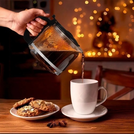 При приготовлении кофе вода нагревается, а затем подается в фильтр с молотым кофе. Многоразовым фильтром можно пользоваться неограниченное количество раз. Пройдя через фильтр, кофе поступает в стеклянный кофейник. В месте установки кофейника находится платформа для подогрева. При включении кофеварки включается нагревательный элемент, расположенный под платформой. Он нагревает воду, поступающую из резервуара, и платформу для подогрева. По завершении приготовления кофе платформа продолжит нагреваться. Выключите кофеварку через 30–40 минут.