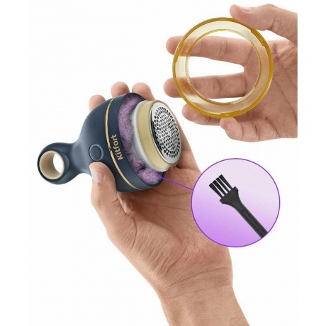 Очиститель катышков Kitfort KT-6311 вернёт вашей одежде ухоженный вид, счистив с неё появившиеся катышки. Катышки появляются на одежде из-за неправильного ухода, частой и неправильной стирки, износа или из-за примеси полиэстера в тканях одежды. Принцип работы схож с электробритвой — защищённый металлической сеткой блок ножей срезает комки ворса с поверхности ткани. Съёмный блок ножей сделан из нержавеющей стали. Прибор можно использовать для любых тканей из хлопка, шерсти или льна.