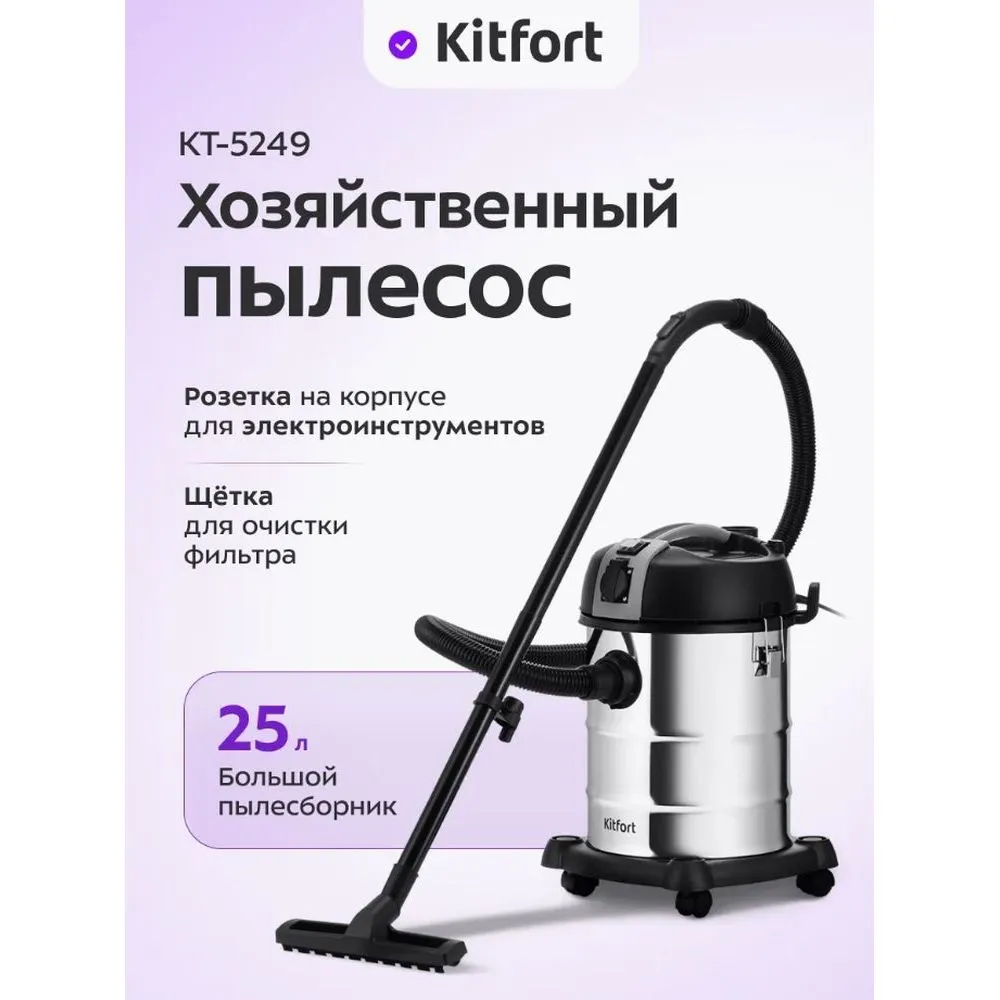 Пылесос хозяйственный Kitfort КТ-5249 - по цене 5990 руб. в интернет-магазине КотоФото. Подробная информация находится на карточке товара - описание, характеристики, фото. Забрать заказ можно из пунктов самовывоза или оформить доставку на дом. Если останутся вопросы, звоните - 8(495)137-52-98 в Москве.