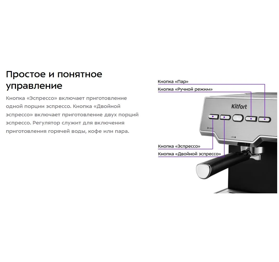 Описание товара Кофеварка рожковая Kitfort КТ-7255