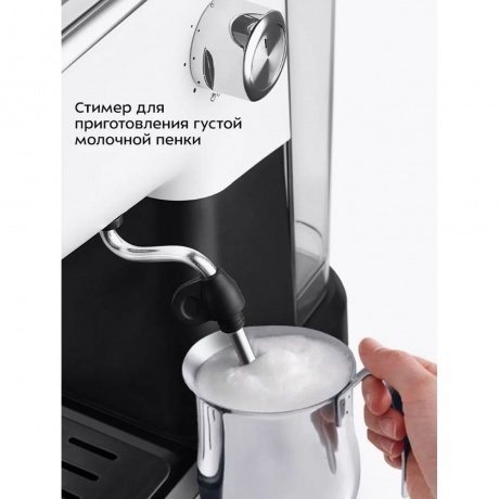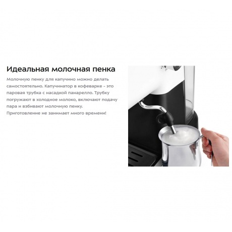 Рожковая кофеварка КТ-7506 поможет приготовить кофе эспрессо, капучино или латте, а также множество других видов кофе на ваш вкус. С помощью рожковой кофеварки также можно подогреть сок, остывший чай и другие напитки. Молочную пенку для капучино можно делать самостоятельно. Капучинатор в кофеварке - это паровая трубка с насадкой панарелло. Трубку погружают в холодное молоко, включают подачу пара и взбивают молочную пенку. Приготовление не занимает много времени!
