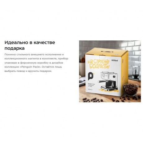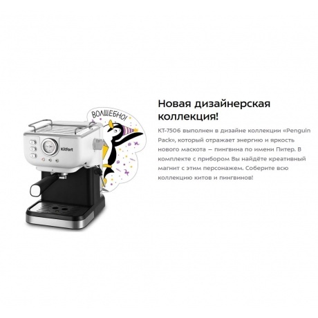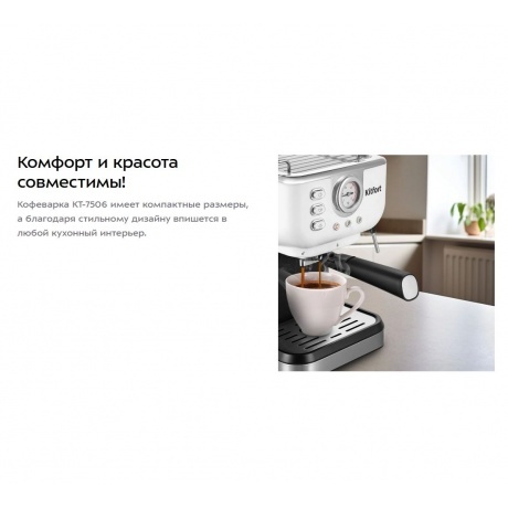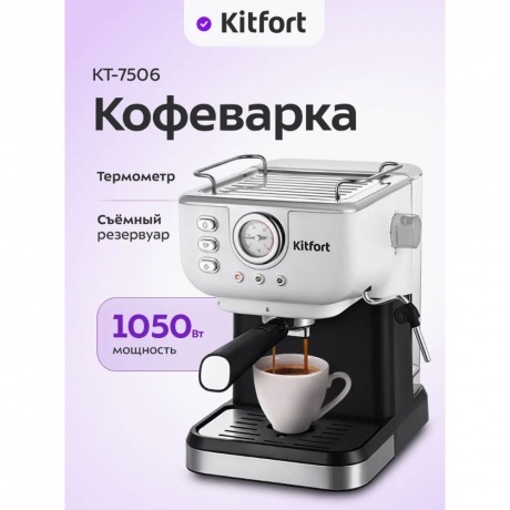 Кофеварка рожковая Kitfort КТ-7506 - характеристики, описание товара, фото и цены представлены на карточке товара. Этот товар вы можете купить по цене 6990 руб., позвонив по телефону 8(495)137-52-98 в Москве, или оформив покупку через корзину.