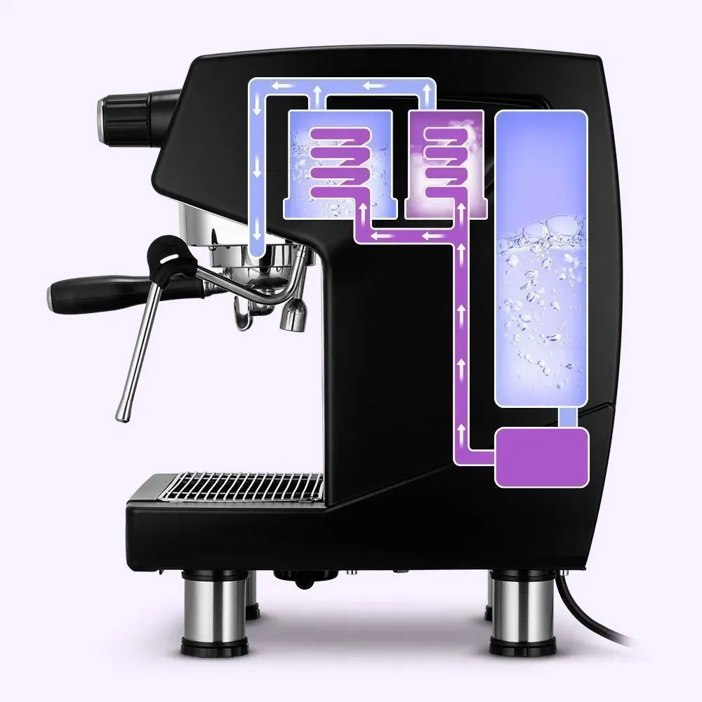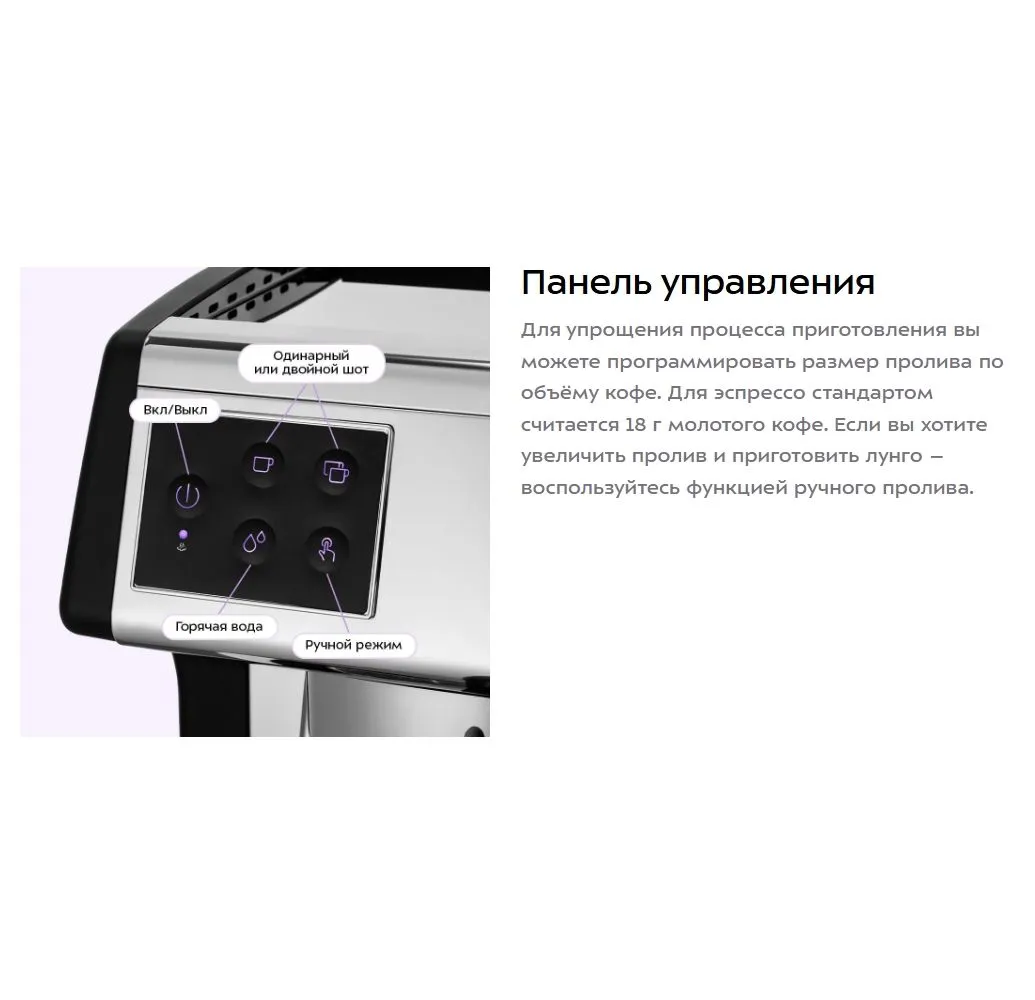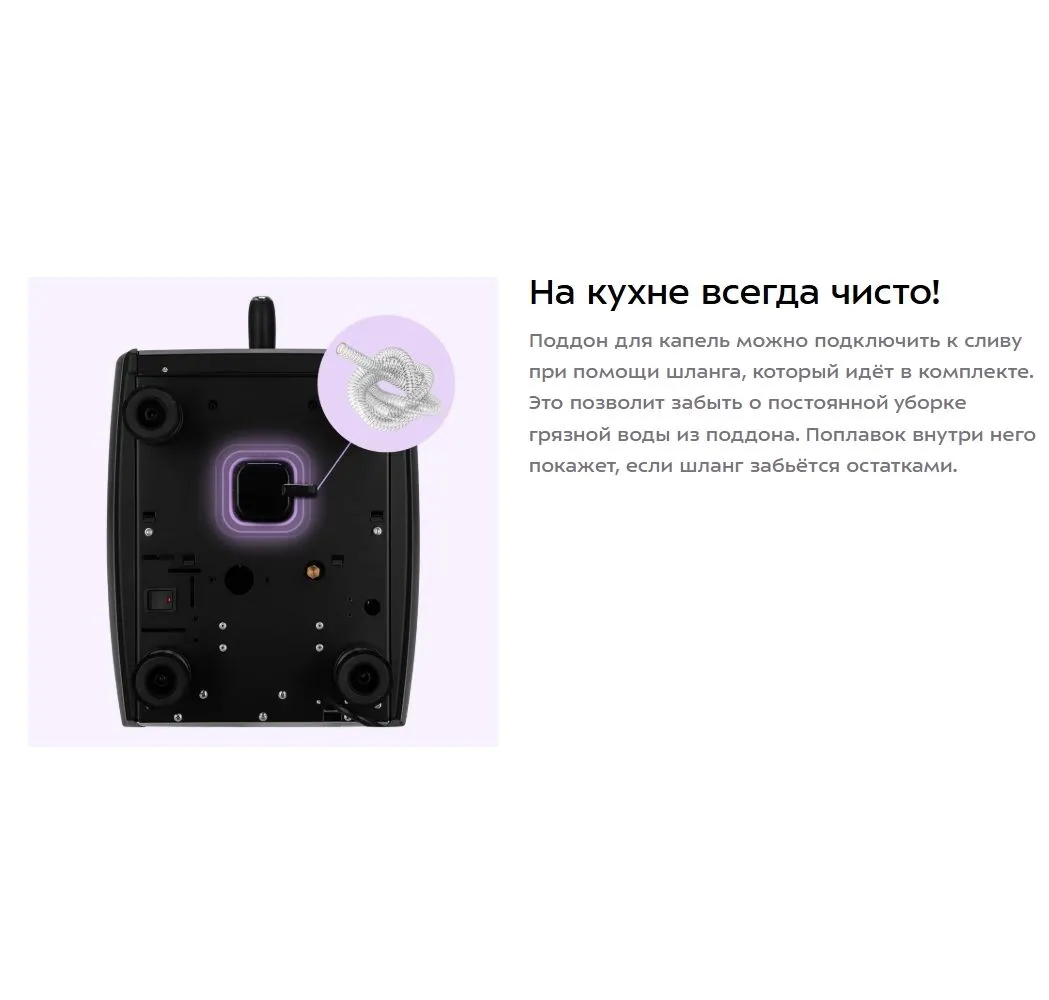 индикатор включения, индикатор работы, раздельные бойлеры, съемный лоток для сбора капель