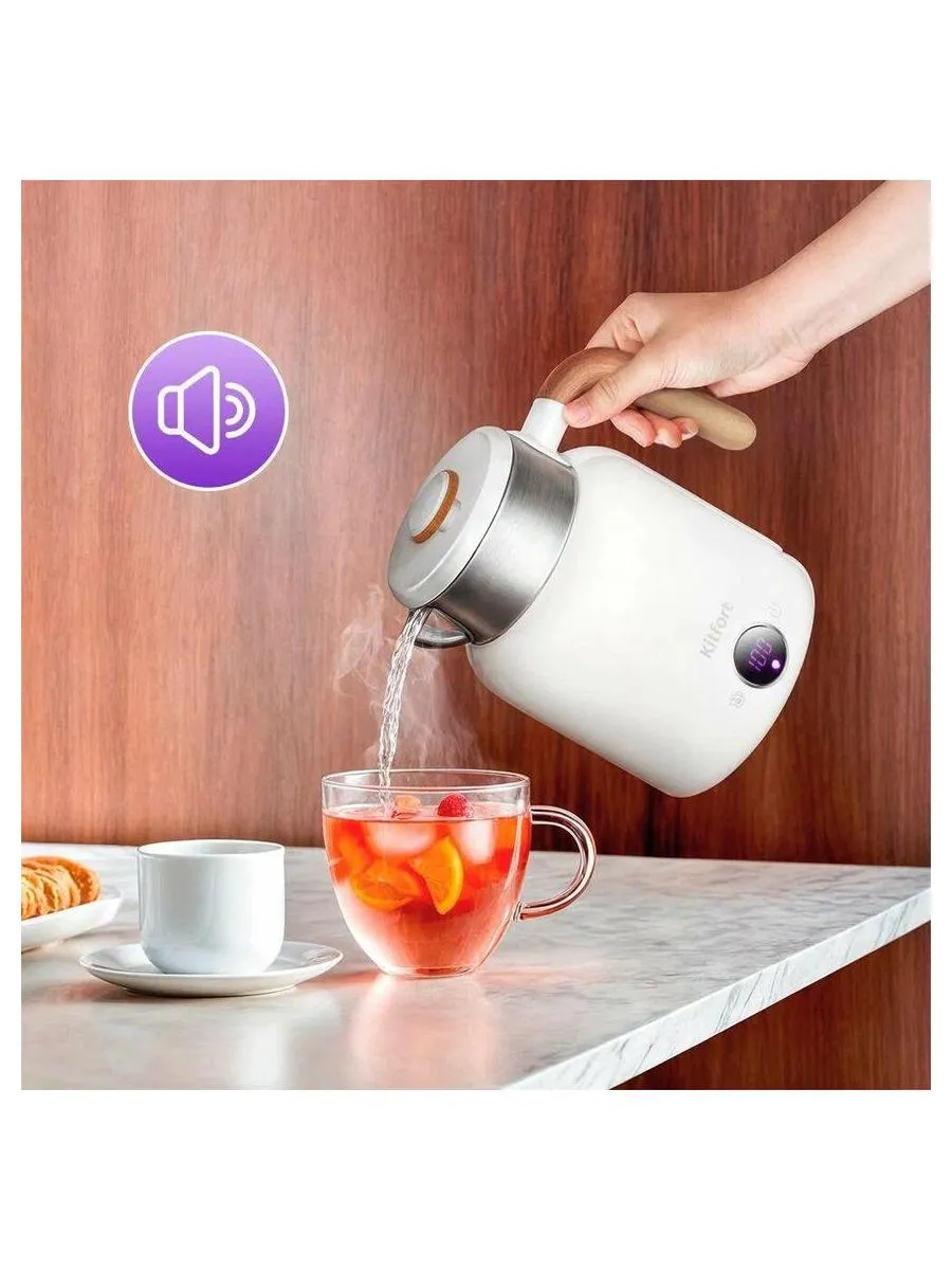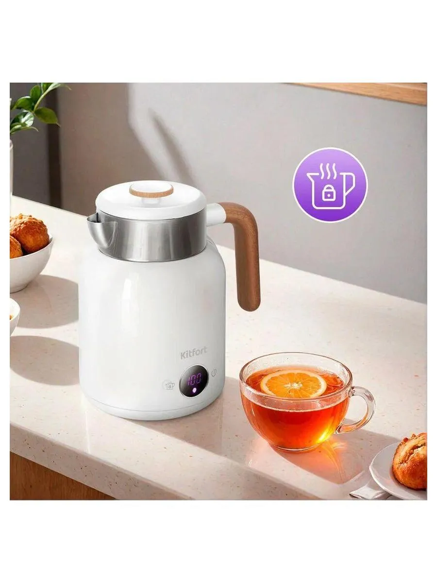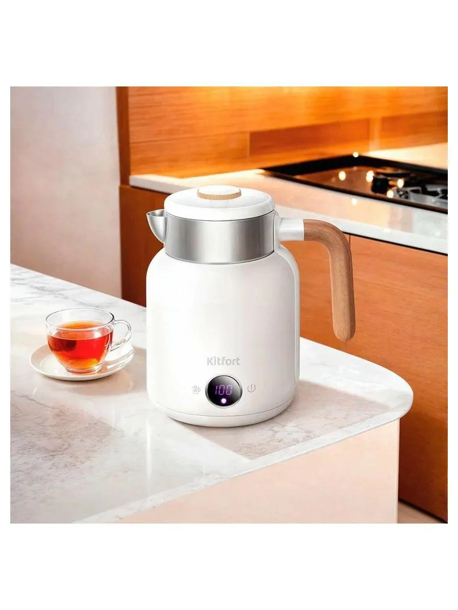Электрический чайник с электронным терморегулятором KT-6724 может не только вскипятить воду, но и нагревать её до температур 40, 70, 80 и 90 ?, что очень удобно при заваривании различных сортов чая.