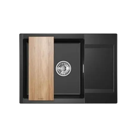 Представляем вам нашу уникальную кухонную мойку серии ESTETICA - идеальное сочетание функциональности и эстетики! В комплекте с этой мойкой вы получаете потрясающую деревянную разделочную доску из ясеня, которая добавит нотку природы вашей кухне. Сифон со сливом и прямоугольным переливом обеспечивает эффективный отвод воды и предотвращает затопление. Оригинальный дизайн нашей мойки впишется в любой интерьер, а гарантия на 5 лет подтверждает ее долговечность. Эта кухонная мойка - настоящая новинка! Она изготовлена из высококачественного кварца, который известен своей прочностью и устойчивостью к царапинам. Благодаря этому материалу, ваша мойка сохранит свой первоначальный вид на долгие годы.