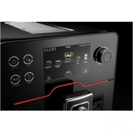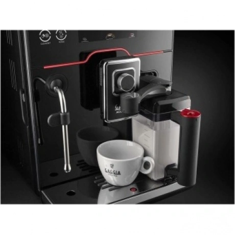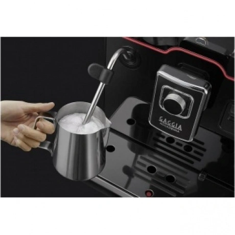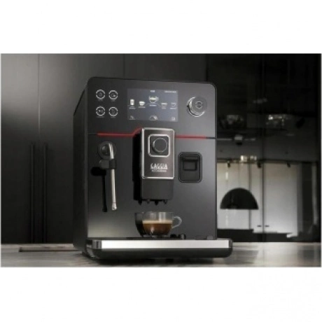 Кофемашина Gaggia New Accademia – новинка-преемница линейки, флагманская модель, кофемашина премиум-класса. Эффектный дизайн. Производится из материалов высокого качества: черное зеркальное стекло, нержавеющая сталь, металл Zama. Корпус из нержавеющей стали. Дизайн дополняется элементами премиум-класса, подсветкой, тактильной текстурой ручек. Фирменная красная линия и детали с подсветкой панели управления. Кант диспенсера выполнен из металла зама. Широкий сенсорный экран с русифицированным меню помогает легко осуществлять настройки и управление прибором.