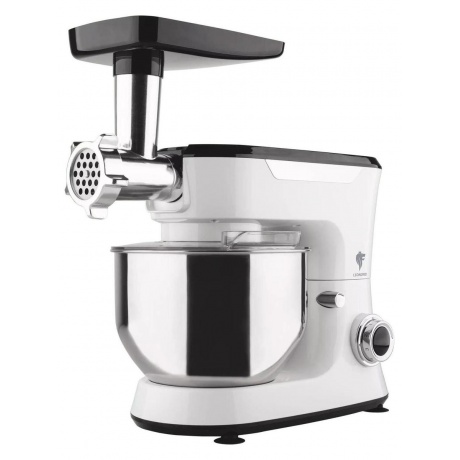 Зачем заполнять кухонные шкафы множеством разных машин, если одна кухонная машина может выполнить работу за троихx Этот планетарный миксер оснащен двигателем мощностью 1000 Вт, а также мясорубкой и блендером. Машина имеет АС двигатель, что обеспечивает низкий уровень шума. Чаша из нержавеющей стали вмещает 4.8 литра. На прозрачной крышке для чаши есть окно, для добавления ингредиентов прямо во время работы. Кувшин блендера вмещает 1.5 литра, а в комплекте с мясорубкой идет насадка для колбасок и кеббе.